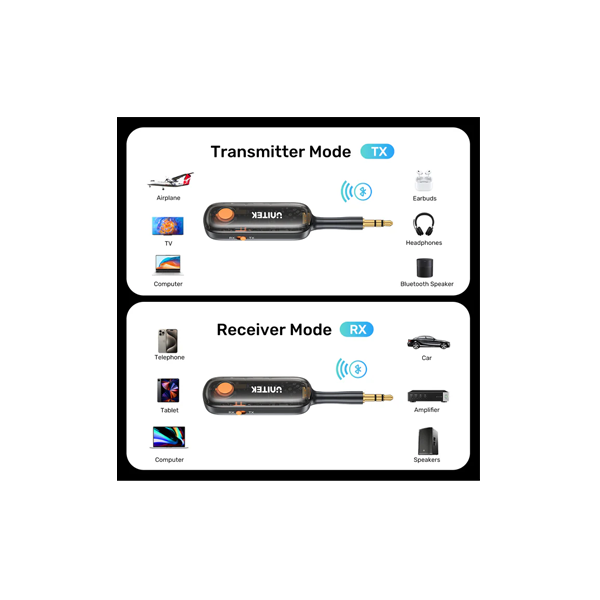 Transform your audio experience with the UNITEK 2-in-1 Bluetooth Transmitter Receiver, enabling seamless connection to car audio, home stereos, and wired headphones for streaming music or connecting Bluetooth devices.