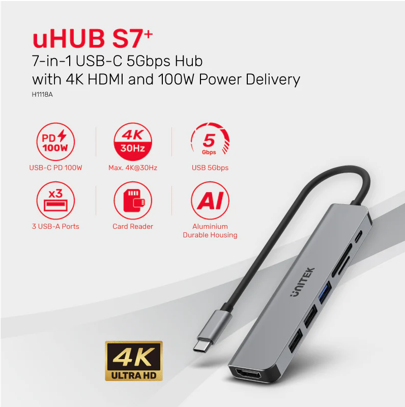 This all-in-one USB-C adapter includes an HDMI port, a USB 3.0 port, an SD/TF card reader, a 100W PD charging port, and two USB 2.0 ports, making it compatible with a wide range of devices.