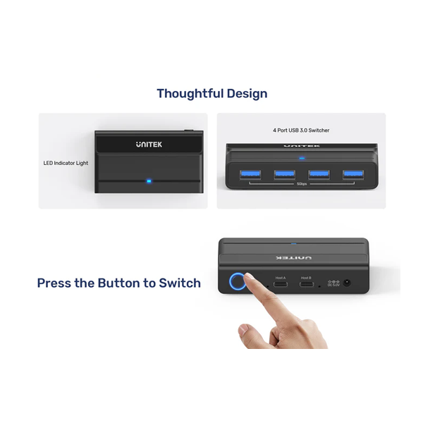 Enhance your workspace with the UNITEK USB 3.0 KVM Switch, designed to allow two computers to share four USB devices effortlessly. Perfect for connecting keyboards, mice, USB drives, printers, scanners, USB cameras, and headphones, this switch boosts your productivity by making it easy to toggle between your work and personal computers.